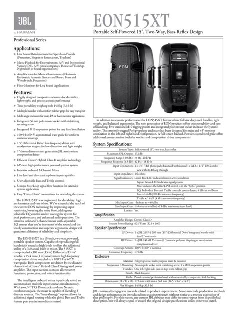 Read Online jbl eon 515xt manual Reader By Click Button. jbl eon 515xt manual it’s easy to recommend a new book category such as Novel, journal, comic, magazin, ect. You see it and you just know that the designer is also an author and understands the challenges involved with having a good book. You can easy klick for detailing book and you can read it online, even you can download it